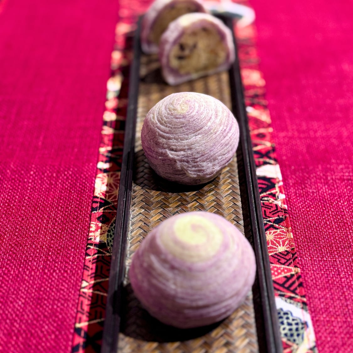 丁寧に織り込みながら作る生地の繊細な可愛さに加え、たっぷりのラムレーズンに中華菓子らしく陳皮(みかんの皮)を加えた餡を合わせた、味わい・香りともにリッチな味わいです